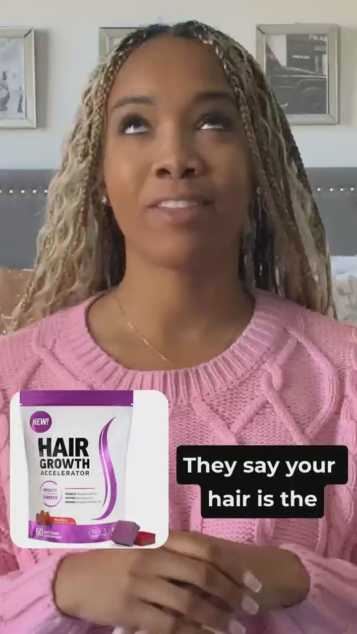 Hair Growth Accelerator (Mixed Berry) is a daily beauty chew designed to support healthier-looking hair growth, strength, and length retention from the inside out. Formulated with 10,000 mcg Biotin plus Vitamins C + E, these soft chews help nourish hair, skin, and nails in one simple step—without the hassle of pills.
